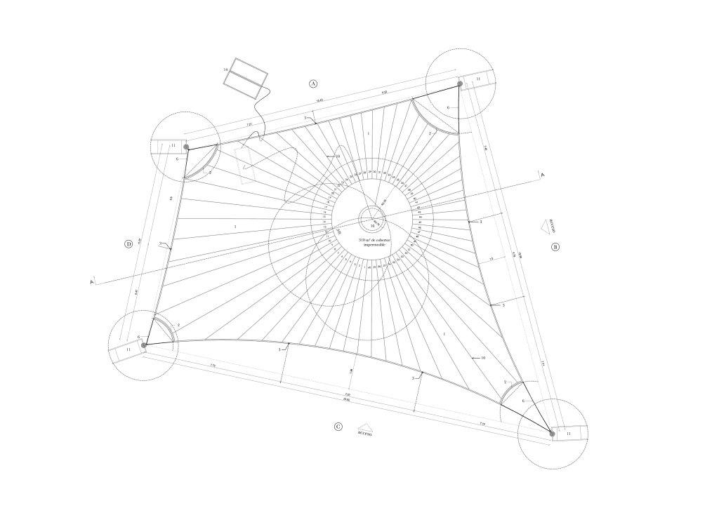 Se plantea un edificio ligero, fácil de armar y desarmar, transportable, flexible e inestable. Un edificio interactivo, frágil en su apariencia y fuerte en su capacidad. Un edificio que respira, que se mueve, una arquitectura de pieles translúcidas pero estructurales.